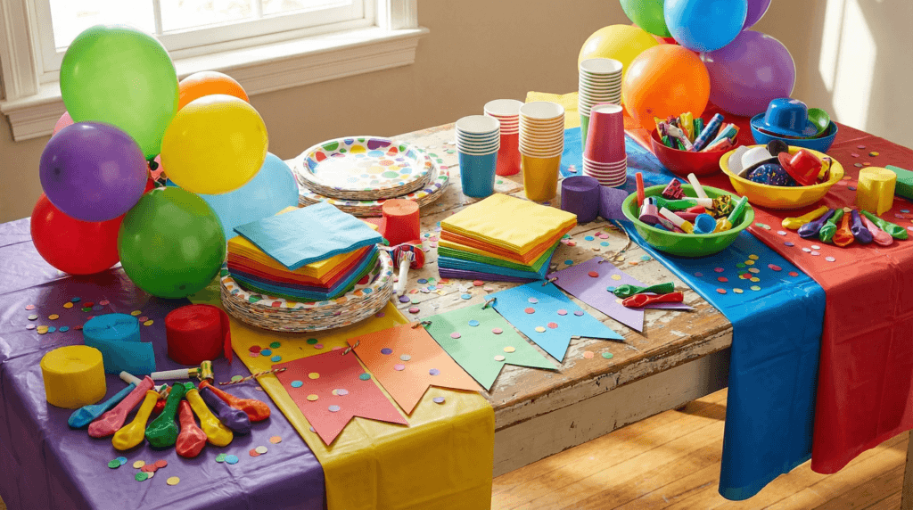 I always start my party supply hunt at my local dollar store. You’d be surprised by the range of decorations, eating ware, and even themed party gear you can find for just a buck or two. Balloons, streamers, tablecloths, party hats, and even plastic utensils are all available in stock and ready to go; no need to blow your budget on basics.